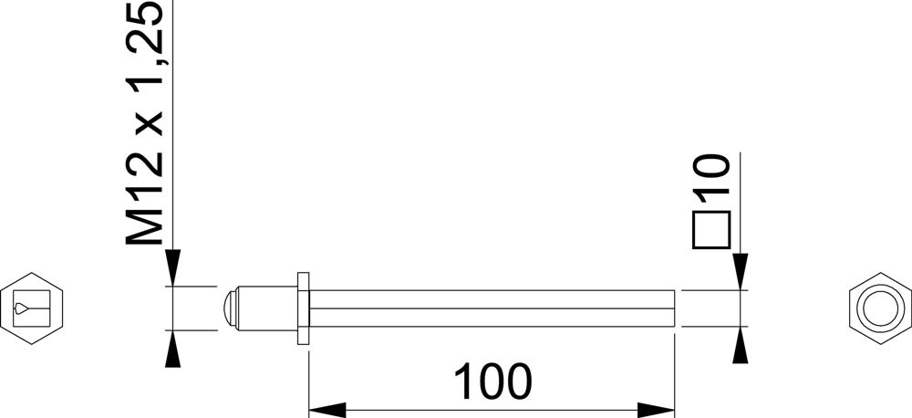 Vierkantstift FDW-Profilstift Vierkant 10 x 100 mm Eisen verzinkt geteilt M12 x 1,25