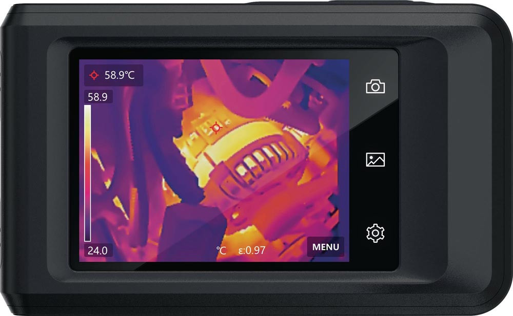 Infrarot-Wermebildkamera mit Bluetooth / WiFi (Echtzeitübertragung auf vorhandenes Handy möglich) · handlich, kompakt und einfach zu bedienen · 8 Farbpaletten · USB-Schnittstelle · 3,5″ großes Touch-Farb-LC-Display · Technische Daten: