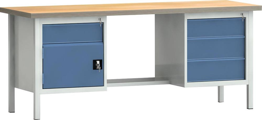 Werkbank PW 700 B2000xT700xH840mm Buche Multiplex lichtgrau / brillantblau 4 Schubl. 1 Tür E6002611