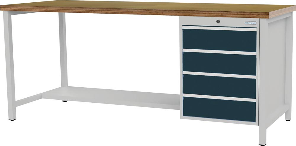 Werkbank anthrazitgrau lichtgrau B1500xH859xT750 mm lichtgrau, RAL 7035 anthrazitgrau, RAL 7016 4 Schubladen