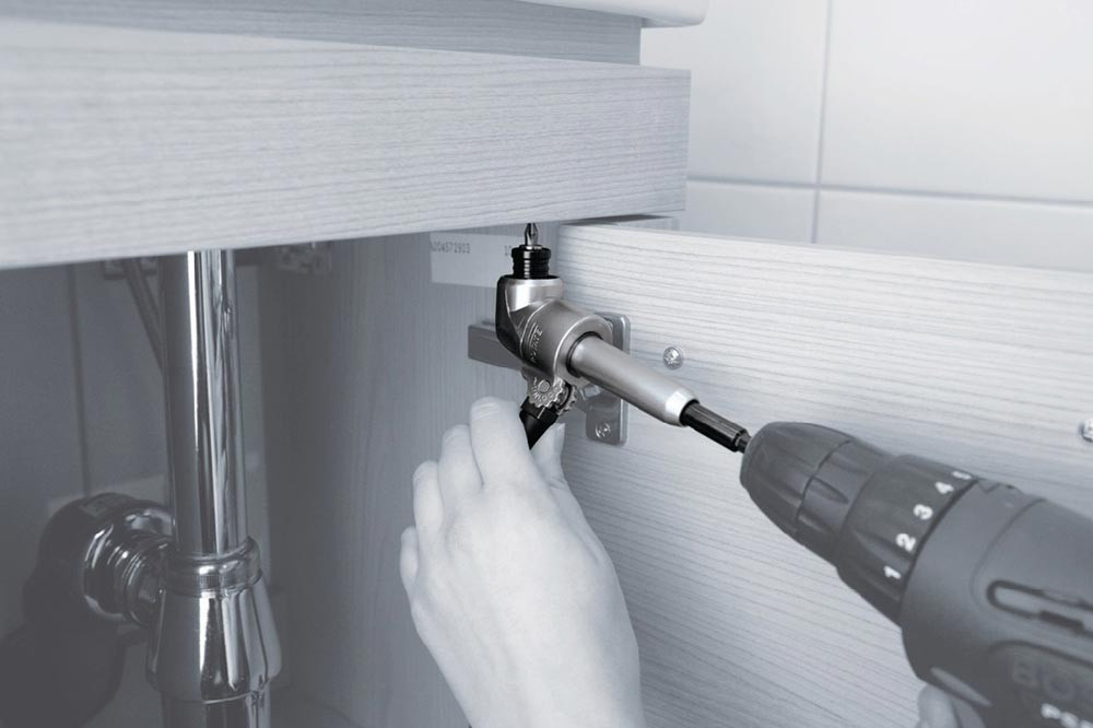 mit abgewinkeltem Kopf (105°) · für den Einsatz im konv. Akkuschrauber · Stahlgehäuse · für Bits C 6,3 und E 6,3